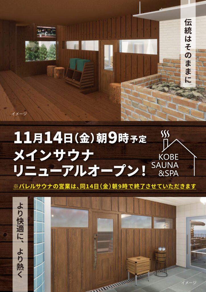 【11/14】メインサウナ リニューアルオープンのお知らせ