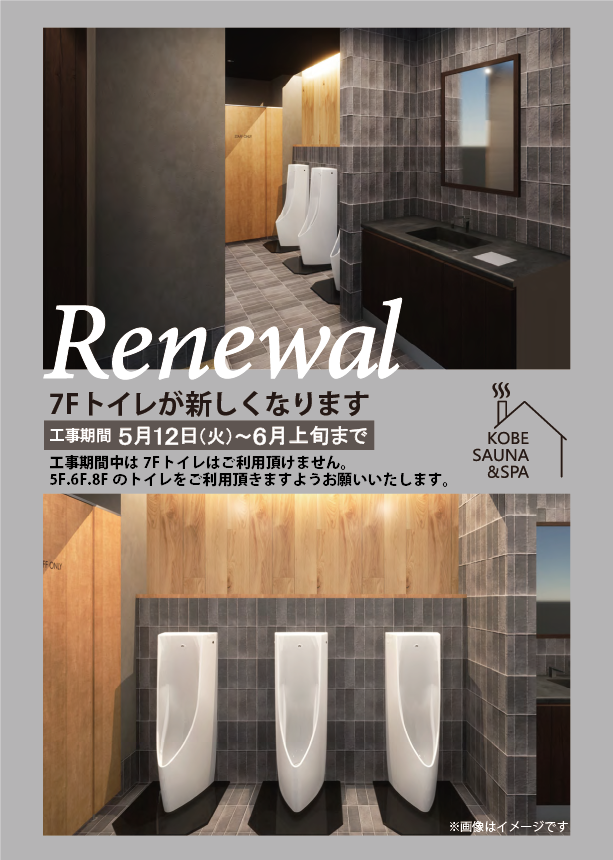 リニューアル工事期間中は、7Fトイレはご利用いただけません。