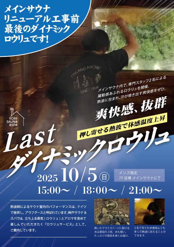 【10/5メンズフロア】さよならメインサウナ「Lastダイナミックロウリュ」開催!