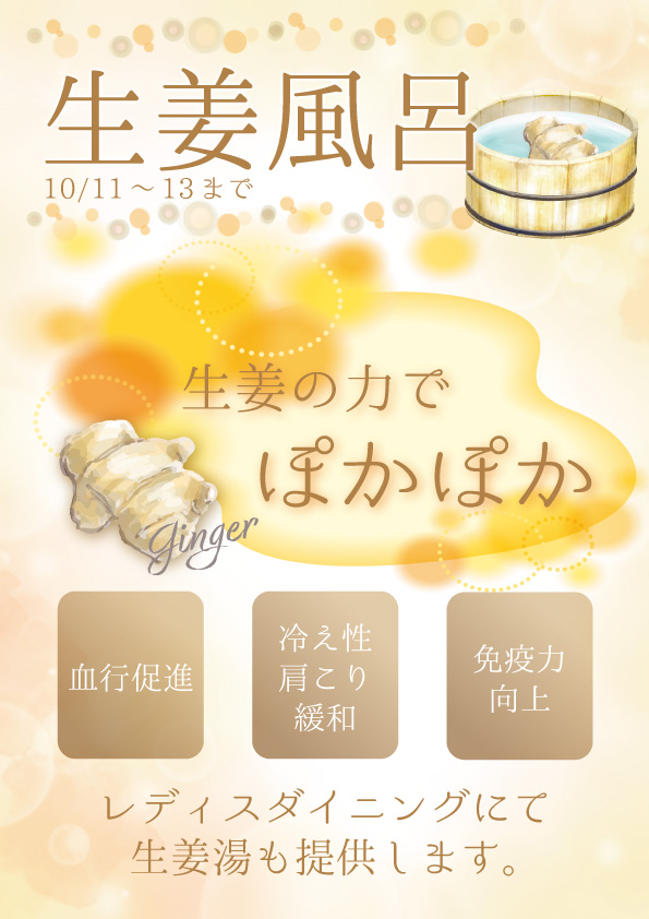 【レディスフロア 10/11~13】レディスフロア限定!生姜風呂