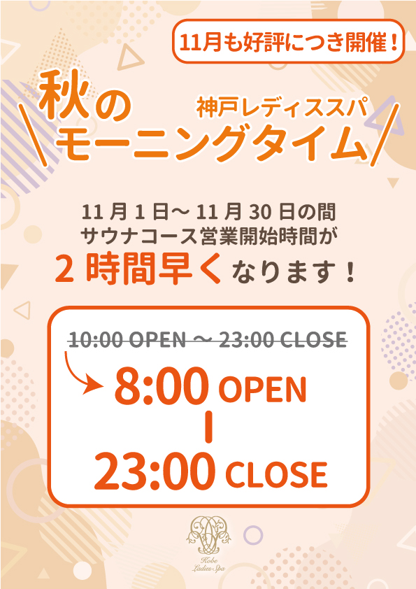 【レディスフロア 11/1~11/30】秋のモーニングタイム延長決定!