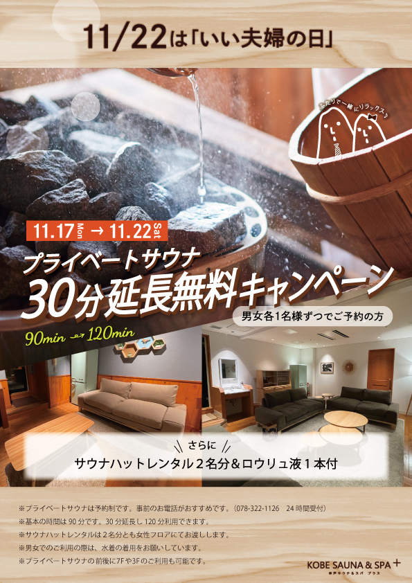 11/22はいい夫婦の日!プライベートサウナ30分延長無料キャンペーン
