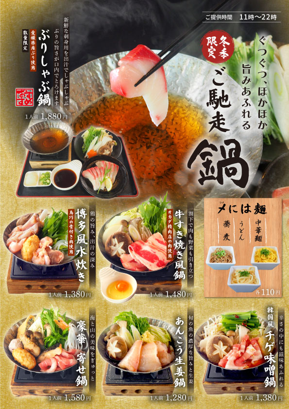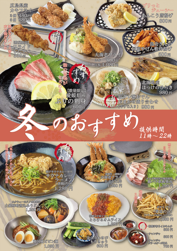 など、旬の逸品や冬だけの限定メニュー満載、食べ逃しにご注意を。