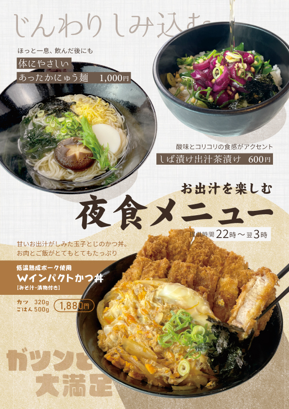 (夜食メニューはメンズフロアのみ 22:00~翌3:00)