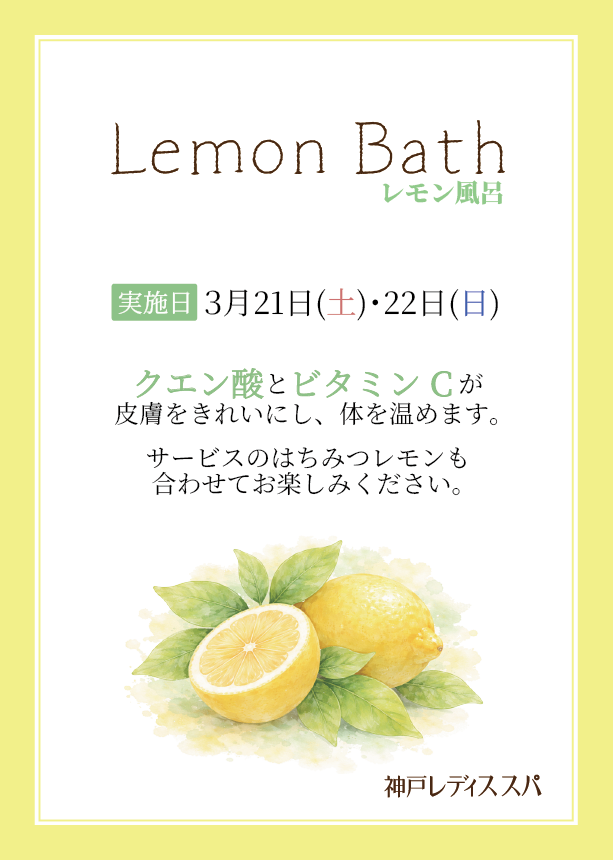 【レディスフロア限定】3月21日(土)・22日(日)レモン風呂