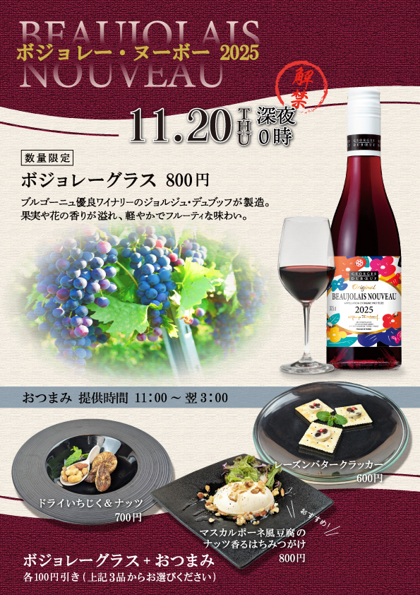 ※ボジョレー・おつまみいずれも期間・数量限定です