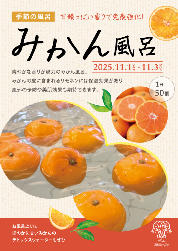 【レディスフロア 11/1~11/3】免疫力強化や美肌に!みかん風呂