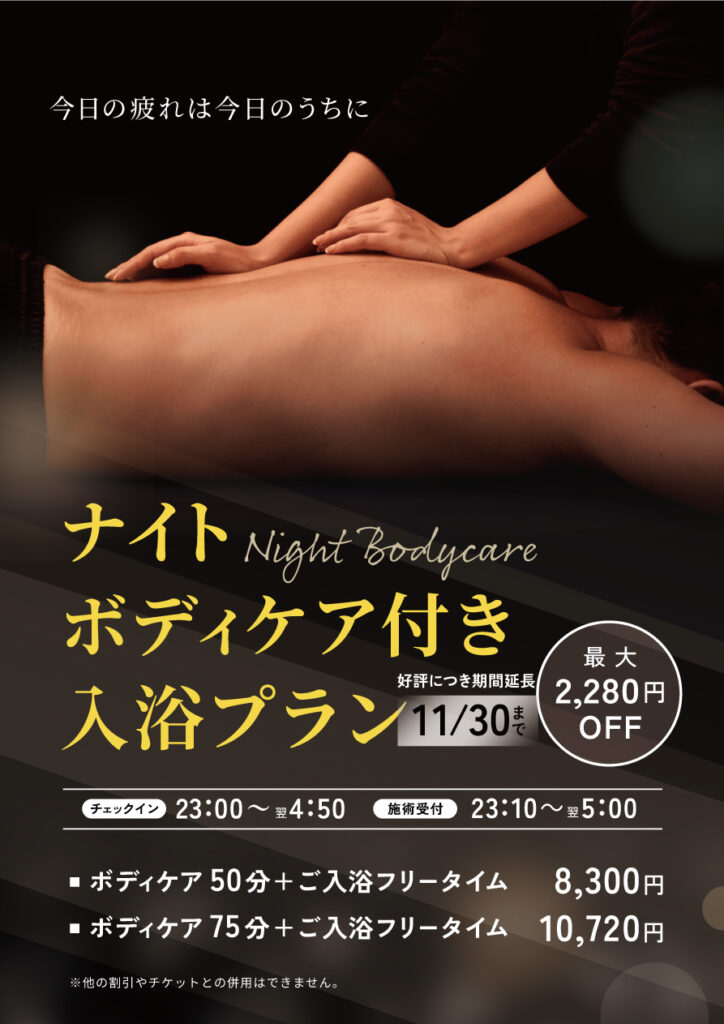 好評のナイトボディケア付きプランが11月も期間延長となりました!