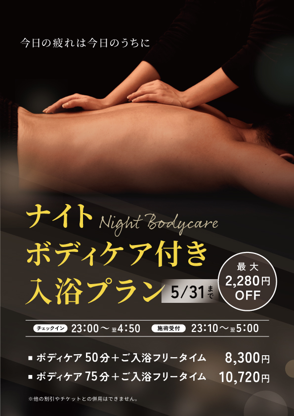 【メンズフロア 5/1~5/31】23時からお得なナイトボディケア付きプラン